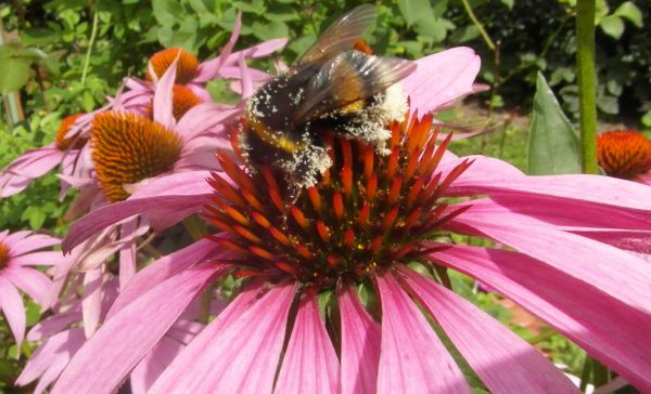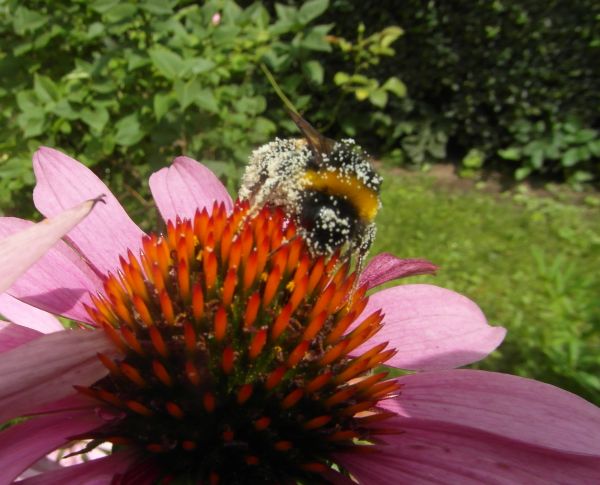 Owady wykorzystuja każda chwilę słonka- tylko przestaje padac, słonko wyjrzy a pełno motyli i pszczółek- nawet złapałam na fotkę takiego grubaska skąpanego w pyłku... :woohoo: