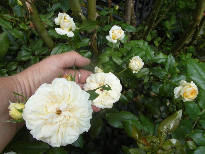 Mało sie krzatam wokól róż- tylko obrywam listki- a przydałoby sie podwiązac wiele, bo wypuściły przez tę wilgoć sporo długaśnych gałęzi. zastanawiam się czy podwiązać,czy przyciąć. By podwiązć musiałabym zdjąć z podpór i od nowa zawijać, bo inaczej to tylko zagmatwam a tu trzeba starannie upiąć..