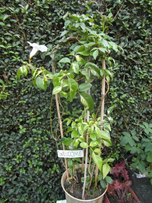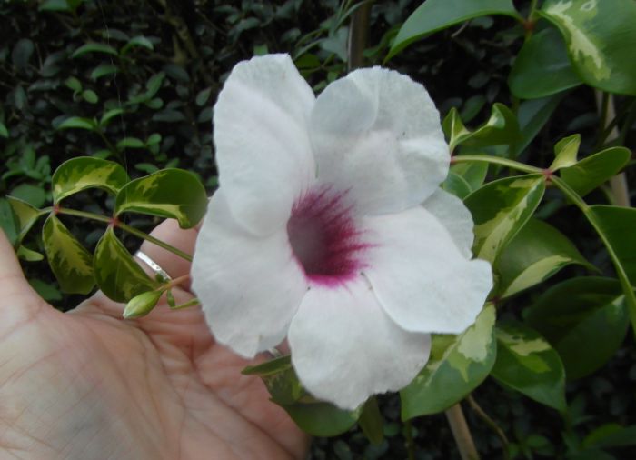 Wielka niespodziankę zrobiła mi Pandorea- siałam z nasion i już trzeci rok czekam na kwiaty- wczoraj -siurprise! - zobaczyłam jeden kwiat i dwa pączki- czyli już zdolna do zachwycania wink-3 - może więcej pokaże... :woohoo: . Wyrosły rośliny o zielonych i o pstrych listkach. Fajnie... Moja satysfakcja,ze w końcu zakwita...