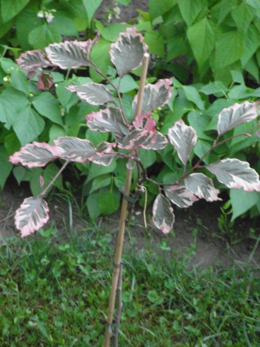 Moja kochana synowa zrobiła mi niespodzianke- przywiozła mi ją wczoraj - buk tricolor szczepiony na pniu. Ja jej dałam masę sadzonek zurawek i kwitnącą budleję oraz hortensje drzewiastą Polar Bear. Obie strony niezmiernie zadowolone... wink-3 2smiech Fotka zrobiona zmierzchem- troszke niewyraźna.. Fotka robiona z góry, z balkonu - troche optycznie skróciła drzewko- ma z 1,50m wysokości. ;)