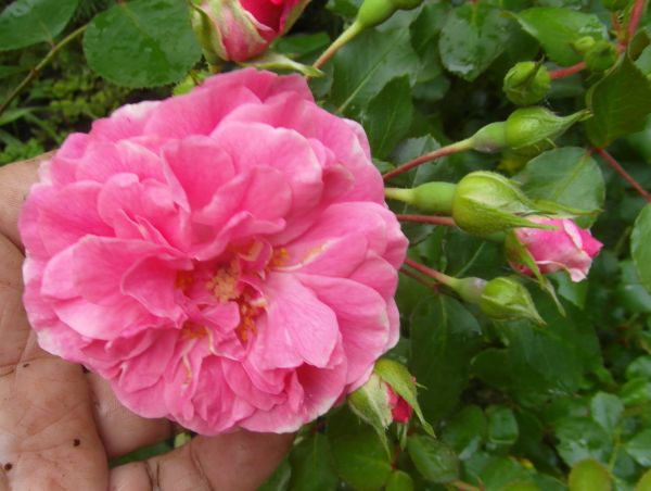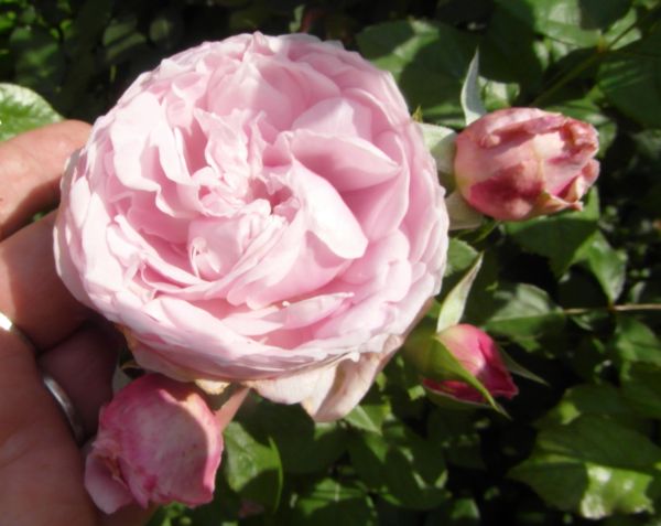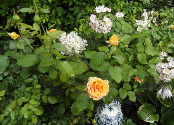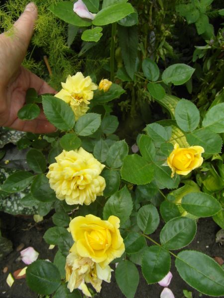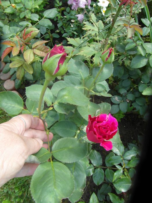 Zmartwiłam sie dzisiaj różą Ashley- szukam i szukam jej po ogrodzie, bo chciałam zobaczyc te jej pofalowane kwiatki- i dzisiaj przypadkiem, przy wycinaniu liści liliowców / brzydkie sie zrobily, suche i żólte tro przycięłam. Zaraz odrosna bo co roku tak robie końcem lipca lub poczatkiem sierpnia.../- no i wylazła marnota spod lisci- kwiatów chyba nie zobaczę, bo bardzo licha- chyba kupie następną...