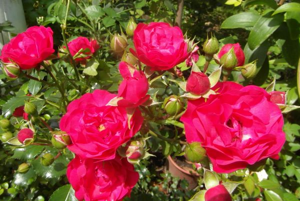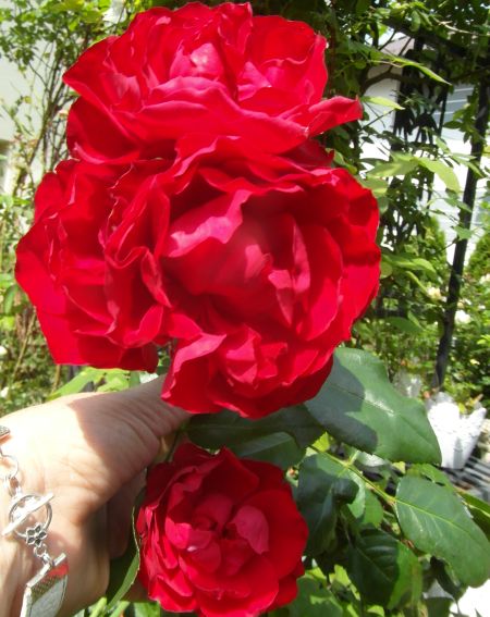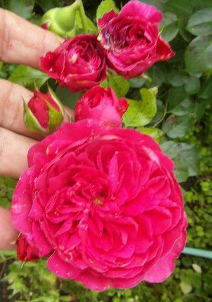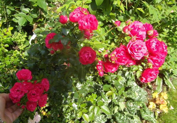 Żaneto- Cardinała Hume jeszcze nie mam. Przy każdym zakupie mam w koszyku, ale potem usuwam, niestety... Na pniu się obawiam,bo dotychczas żadna wkopana na pniu mi nie przetrwała zimy a te dwie co mam to wnoszenie do piwnicy im nie służy- mimo dobrej kondycji po zimie marnie kwitną- nie mam się czym "pochwalić". wink-3 A Cardinal do gruntu za duży rośnie... Mogłabym ciąć- ale mam problem z pozbywaniem się wszelkich odpadów z ogrodu i nie chce dokładać sobie pracy z wywożeniem- mąż się złości bo u nas trzeba sobie na skladowisko zielonych odpadów samemu zawieźć. Podobno ma dojść w segregacji śmieci worek na zielone odpady- wtedy na pewno kupie i będę ciąć. Brakuje mi tego koloru w większej bryle- czyli jakby pnącej. Cardinal rośnie spory to mógłby być... :)