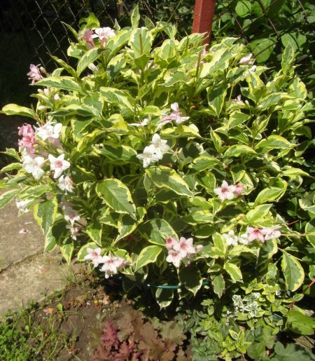 wigela wyhodowana z patyczków :) Przycieta w kulke po pierwszym kwitnieniu- powtarza...