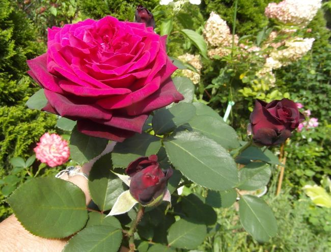 Gosiu- fakt- róże potrzebuja do ładnego kwitnienia dużo wody... I to nie wodociągowej- tylko zwykłego deszczu. U mnie po tych tegorocznych obfitych opadach mocno podrosły i mocniej kwitły. Ale też i więcej listków w plamy- tak że pracy jest więcej- i nie ma jak porządnie popracować - tylko z doskoku miedzy deszczami...