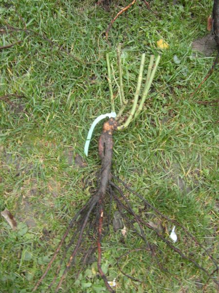Przyszły róże... Akurat zaczęło kropić, więc szybko tylko przycięłam korzenie i szybko wsadziła w doniczki produkcyjne- na zabaw e z sadzeniem w odpowiednie miejsca nie było czasu, bo deszcz sie rozkręcił... Wylądowały więc w doniczkach, zadołuje do wiosny i dopiero wiosna bede sadzić na właściwe miejsca. Nawet nie moczyłam- wszystko piorunem przebiegło, bo ja przeziębiona , kaszląca bałam sie zmoknąć. Diniczki stoją na deszczy- będą więc solidnie podlane bo już z 6 godzin leje...