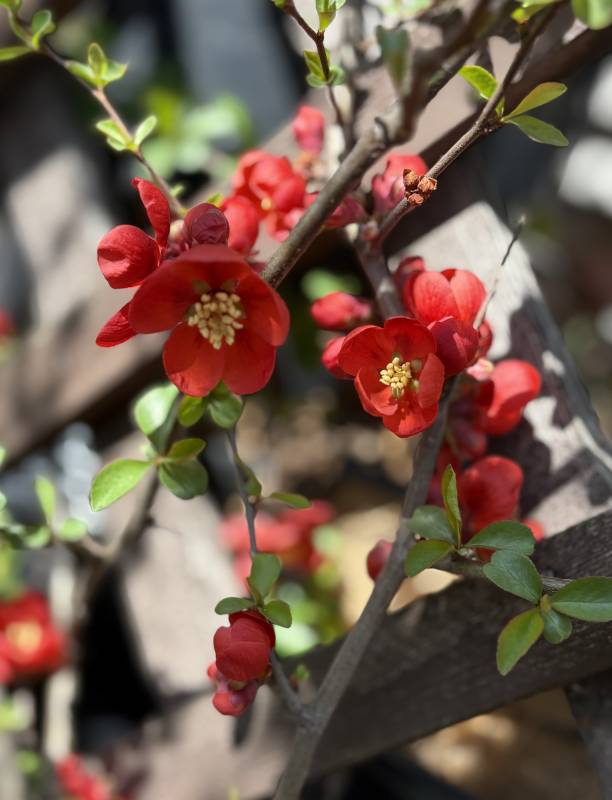 Pięknie i niesamowite, że już pigwowce kwitną. :kocham :kocham :kocham Tu jeszcze nie czas na nie.