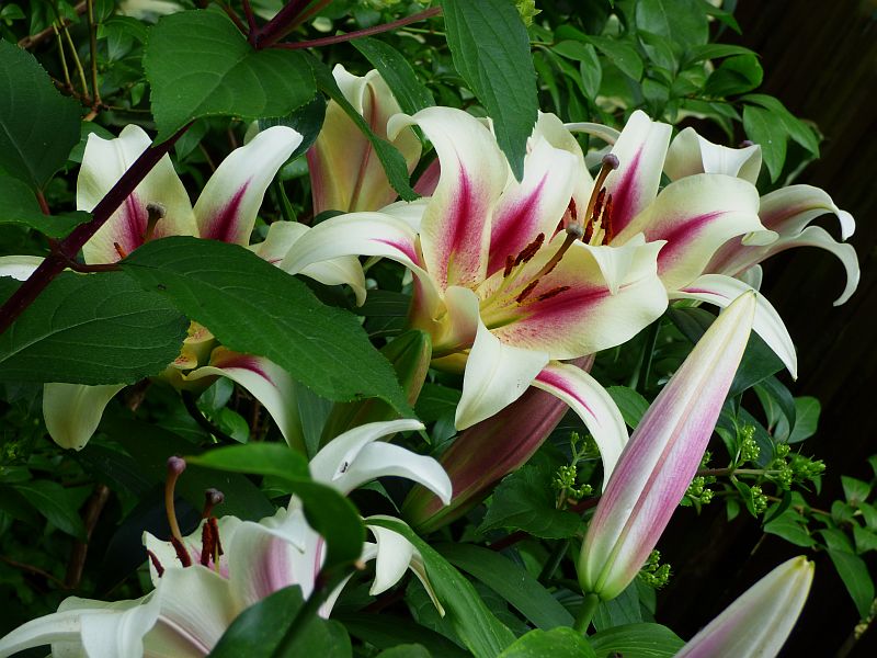 Prawdę mówiąc, myślałam, że portrecików 'Nymph' takiej samej ze sobą i w zbliżeniu mam więcej... a tu jednak górą portrety zbiorcze z pozostałymi liliami... wrócę więc raz jeszcze do pierwszego, jaki robiłam jej w duecie z 'Flashpoint'... nieco inne ujęcie: