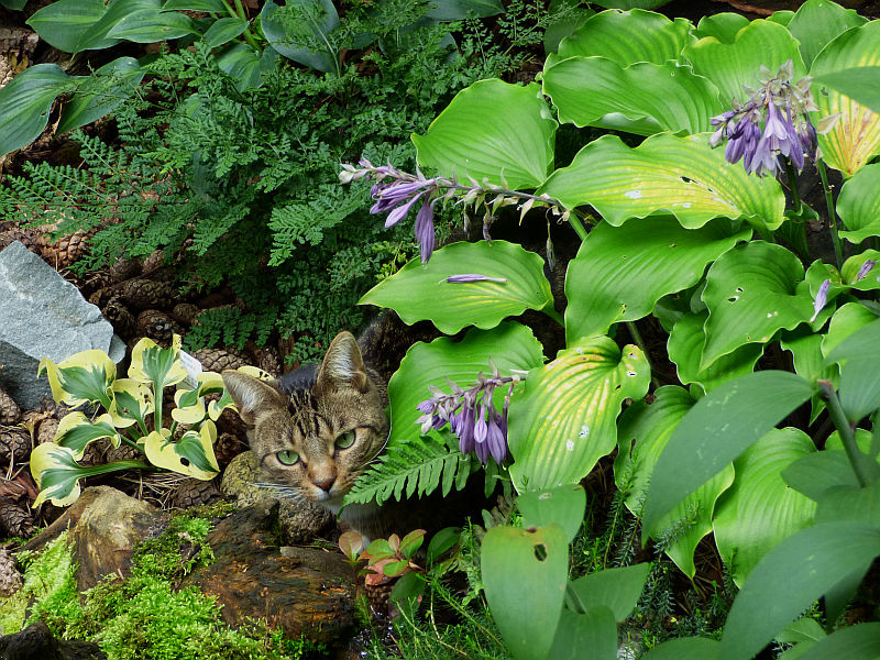 tym razem w menu oprócz 'Arystokratki' znalazły się także 'Remember Me' i 'Abiqua Drinking Gourd'... no chyba że jeszcze czegoś moje oczy nie widzą, co w gąszczu paprotnim jest całkiem możliwe... wszystkie to hosty twarde, o dobrej substancji liścia... no ale takie to właśnie ta gąsienica lubi... taa... ale tak poza tym, to - odpukać! - ten sezon jest faktycznie niczego sobie, jeśli chodzi o fason, trzymany przez hosty, choć takich prosionków po ogródku kręci mi się całe mnóstwo... blee... i bezmuszlowe dziady też łażą... drugie blee
