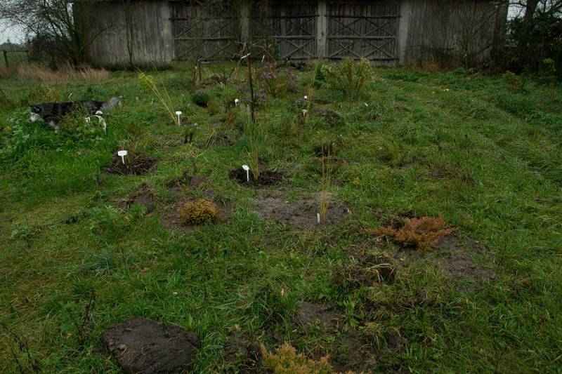 Mam nadzieję, że zima pozwoli trawom i wiśniom japońskim przetrwać (o inne rośliny mniej się martwię) i za rok-dwa będzie cudnie. To jest miejsce na końcu osi: brama-wjazdowa-stodoła, więc w zasadzie widać je z daleka.