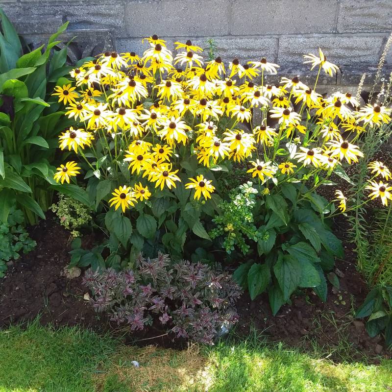 To wspaniale że trafiła Ci się taka sąsiadka . Anenomi to anemony czyli zawilce, Rudebekia to rudbekia błyskotliwa, a verbena to werbena patagońska u nas jednoroczna