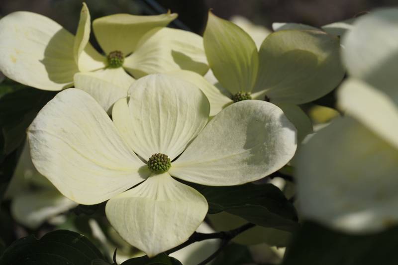 dereń Venus - krzyżówka Cornus kousa i Cornus nuttallii - odmiana o bardzo dużych i efektownych białych podsadkach kwiatowych