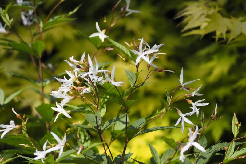 Krzew ten ma piękne, rurkowe, różowe kwiaty zebrane w bardzo okazałe wiechy. Przybiera rozłożystą formę.