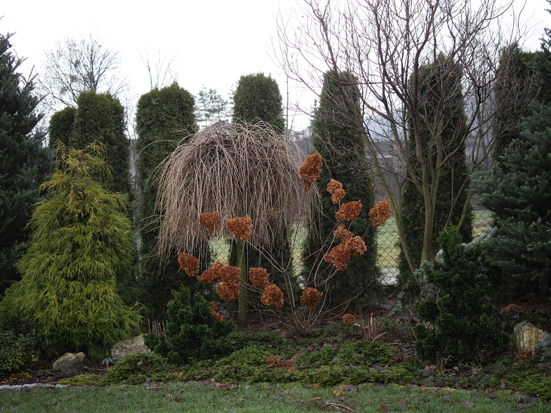 Chyba w 2010 roku , żeby przynajmniej trochę odgrodzić się od koszmarnie mocno wiejących wiatrów, posadziliśmy prawie 140 thuj, a razem z nimi pierwsze drzewka i krzewy. I tak się zaczęło: sadzenie, przesadzanie, szukanie miejsca na nowości i po paru latach poszerzanie trawnika... a jakże to już też za mną