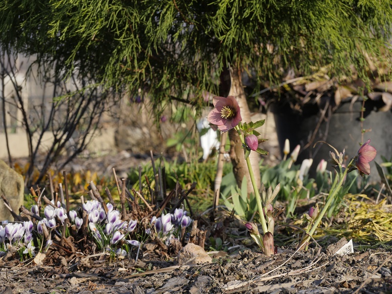 Monia zawilec już pomalutku traci ten swój młodzieńczy, ciemny kolorek ale dalej przyciąga wzrok... Na termomentrze wskoczyło jakieś -5... na szczęście rośliny pod workami dały radę... Nawet magnolia Mighty Mouse , z już pęknietymi pakami fajnie wygląda- dobrze, że taka mała. Jak pąki rodkowe przetrwały to zobaczymy za jakiś czas. Oby tylko już żadne mrozy nie przyszły. Najbliższe dni +20 to ruszy wszsytko z kopyta.