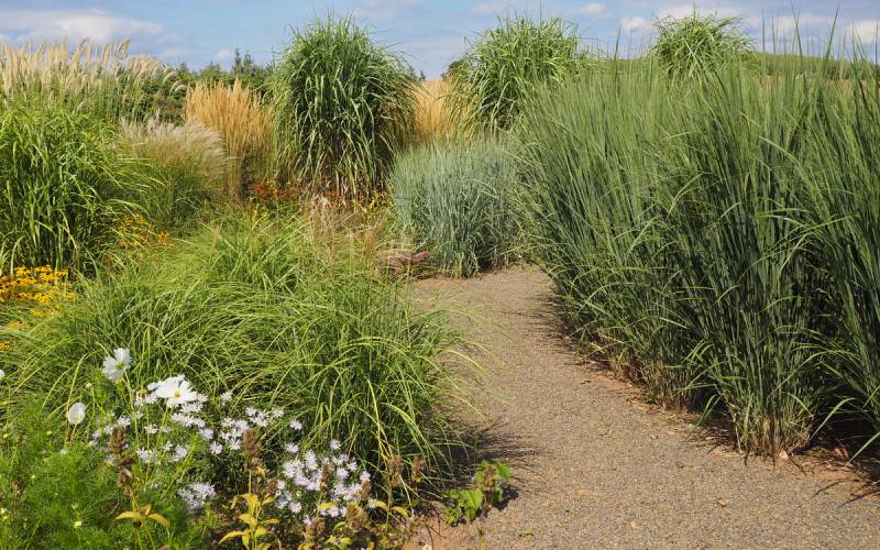 Wejście od strony drogi przy domu na podnóże rabaty z trawami....