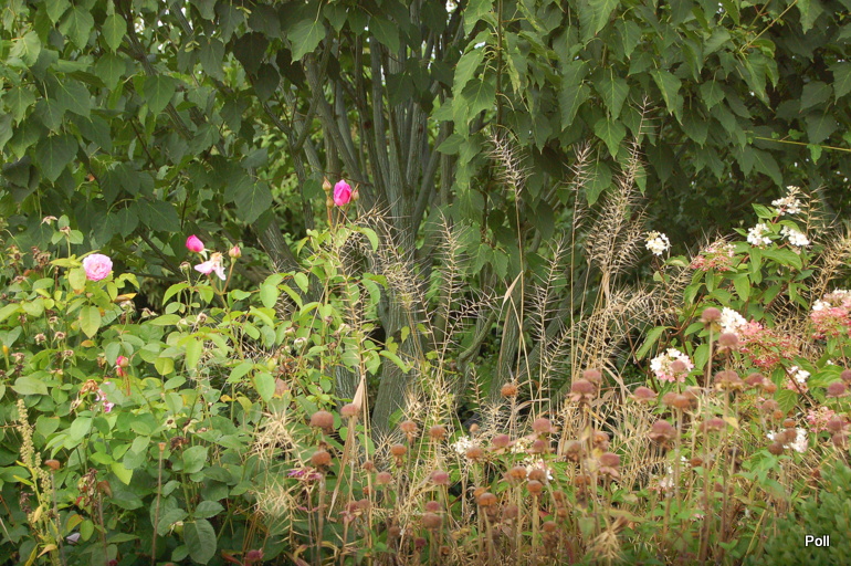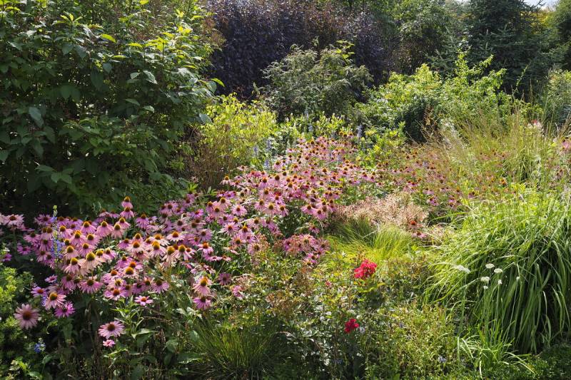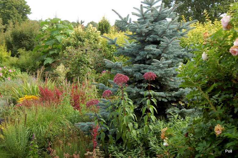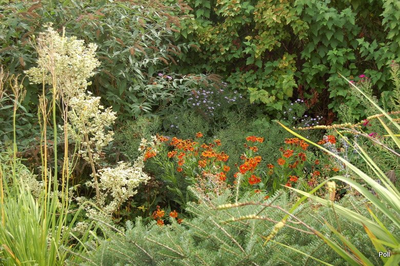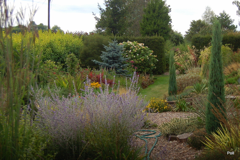 Gdy zawrócimy w stronę domu, znajdziemy się na terenie 'głównego' ogrodu i rozciągnie sie przed nami taki, kipiący roslinami widok...