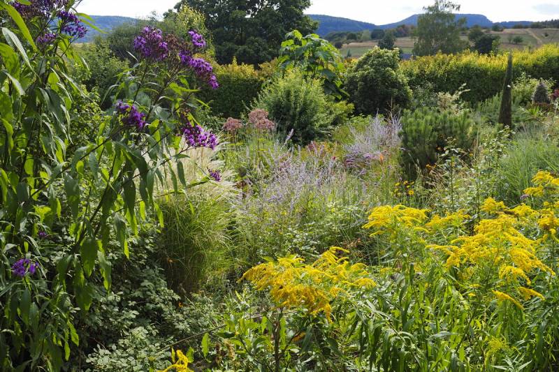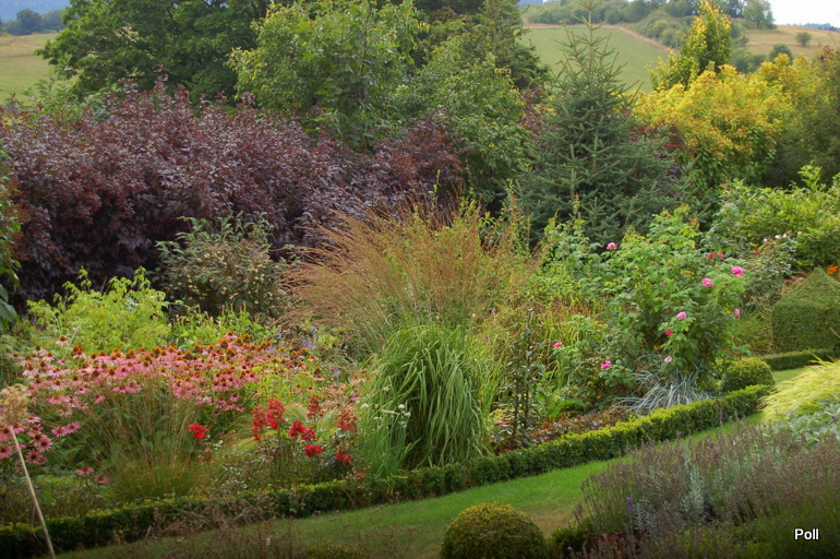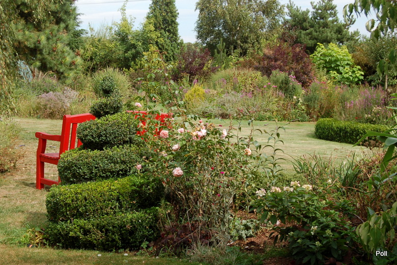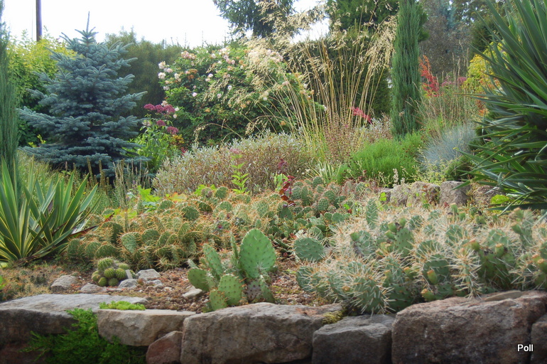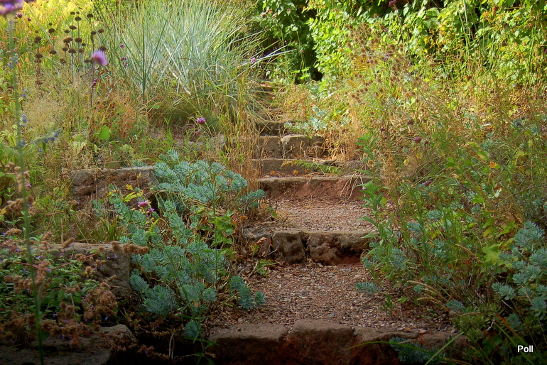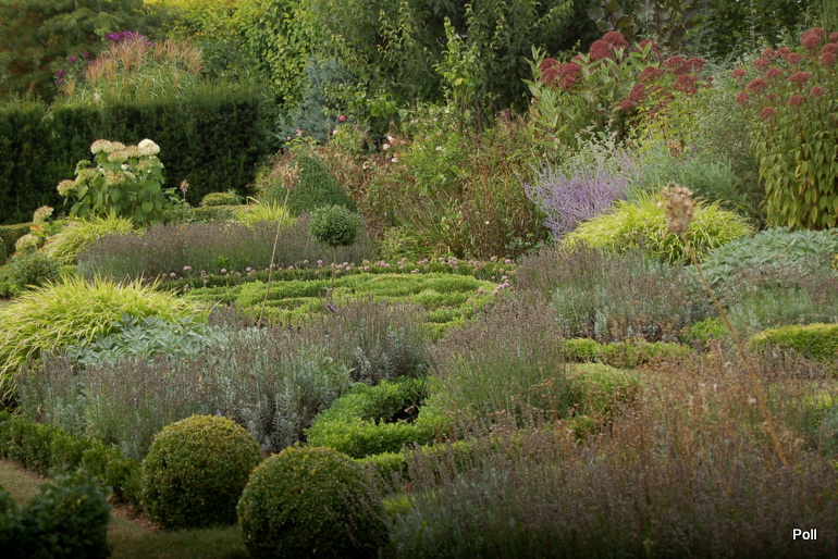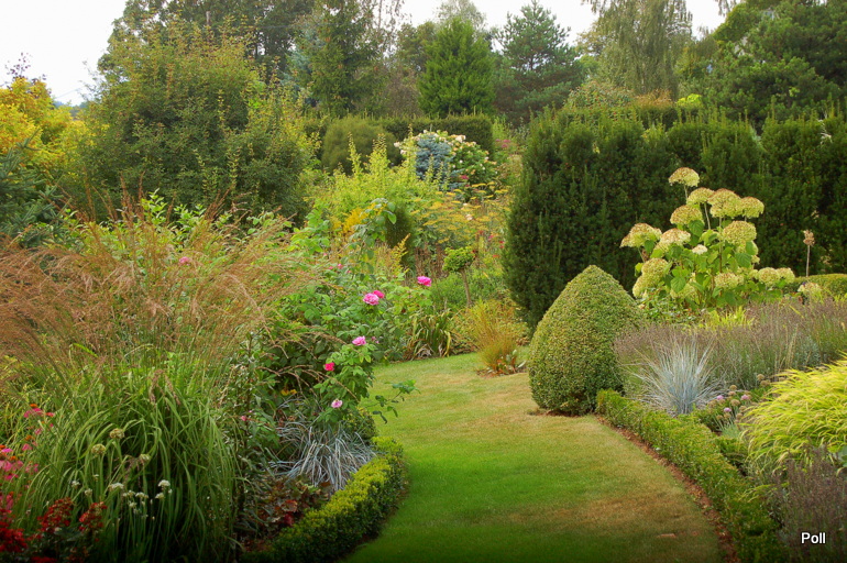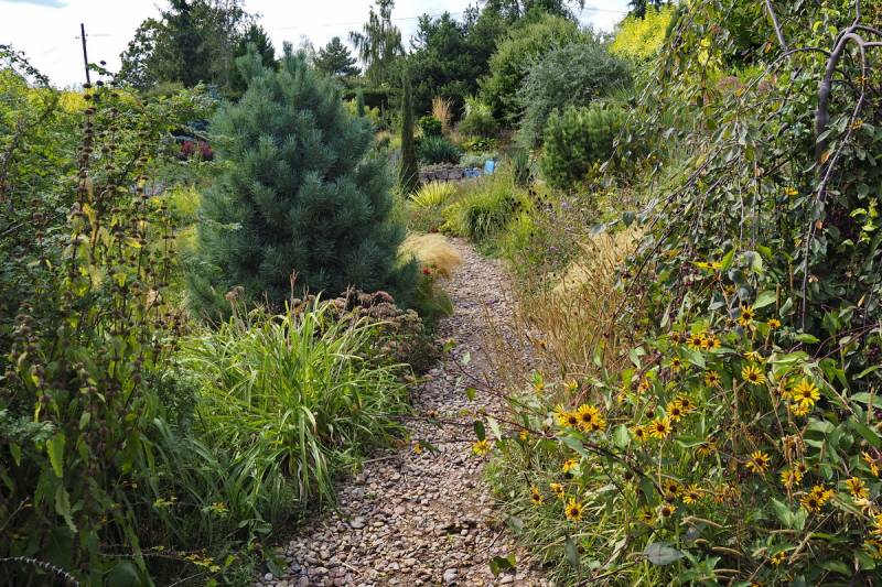 Wspaniale położony na stoku, z cudnym widokiem na majaczący w oddali Szczeliniec , ma tę przewagę nad innymi ogrodami, że teren 'współpracując z Kasią i Tomkiem, pozwolił na stworzenie niebanalnego miejsca. Jednoczesśnie, nie jest to teren łatwy, więc kształt ogrodu i poszczególnych pokoi, wymuszony jest niejako przez górskie warunki. Nie chciałabym też, aby ktoś pomyślał, iż jest to założenie na miarę Wojsławic.... Tak nie jest, bo ogród w Radkowie jest ogrodem wiele mniejszym i kameralnym, ale jednak wartym odwiedzenia.