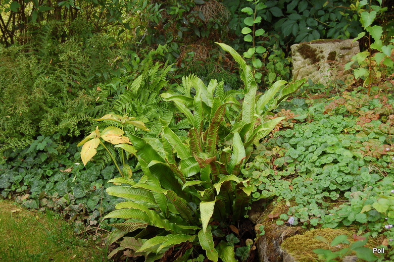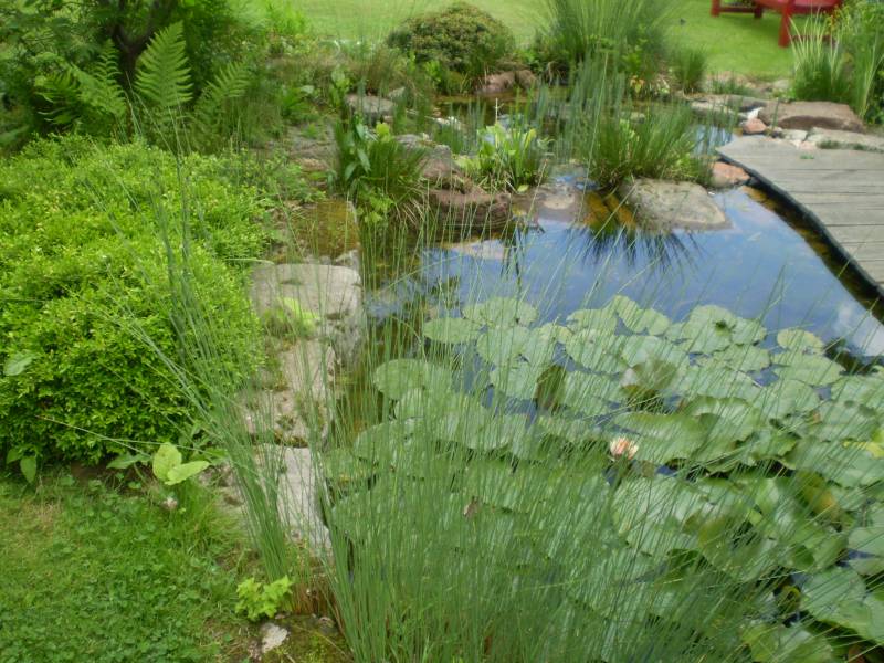 Przy oczku zgromadzone są rośliny cieniste - nie jest to jakaś oszałamiająca ilość gatunków.odmian, ale wszystko jest tak naturalnie skomponowane, że wydaje sie, iż to sama Matka Natura umieściła tutaj te rośliny