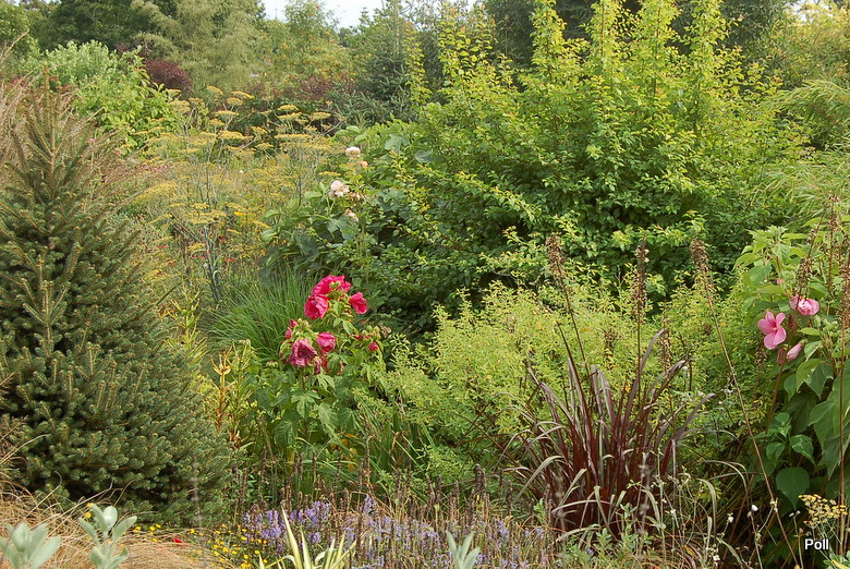 Oprócz roślin, które stale rosną w tej części, sezonowo umieszczane są chyba także inne, o mniejszej mrozoodporności, ale świetnie się z resztą komponujące