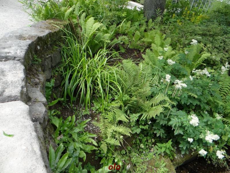 W tym maleńkim przedogródku zastosowane - jak widać - różne rośliny : zarówno na stanowiska słoneczne, jak i do cienia. Miło, że pomyślano również o paprociach