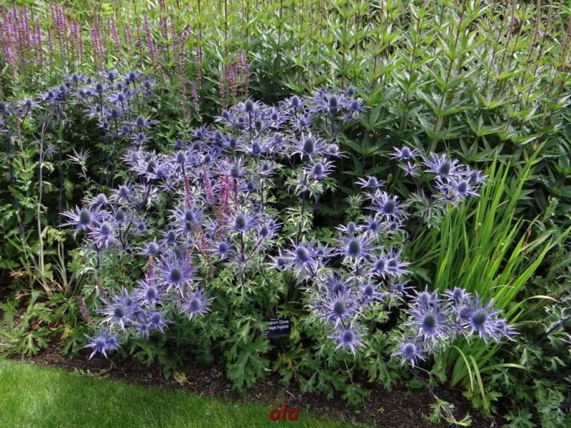 Taka właśnie nieduża hybryda(opatrzona w logo RHS), stoi w centralnym punkcie przykładowego przedogródka, który pokazuje, iz mimo niewielkiej ilości miejsca, może być zielono i roślinnie