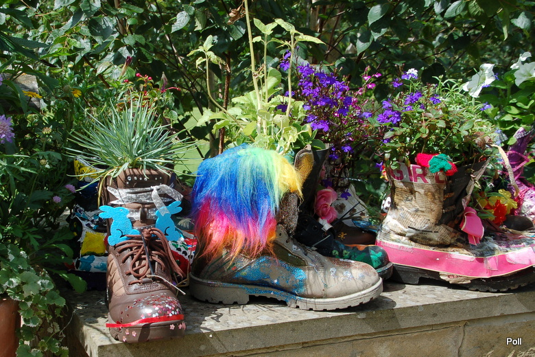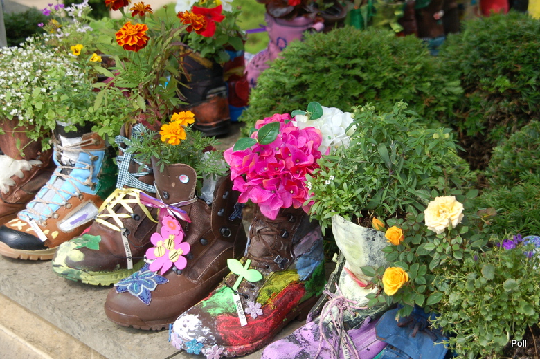 Uczniowie mieli za zadanie zmienić stare, niepotrzebne obuwie w ...mini ogródki, pokazując, jak czasem niewiele trzeba, by zmienić mikroprzestrzeń wokół siebie na kolorową i pełną roślin. Efektów tej inicjatywy nie sposób było nie zauważyć - ukwiecone buty wystawione były wzdłuż głównego zejścia od kas do ogrodu