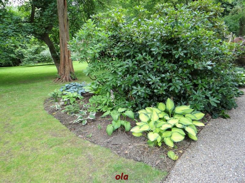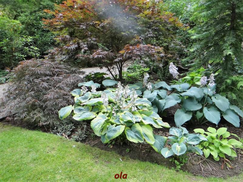 Jest też zagon na obrzeżach którego nasadzone są hosty ( nie ma etykiet ).