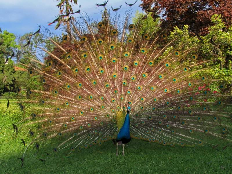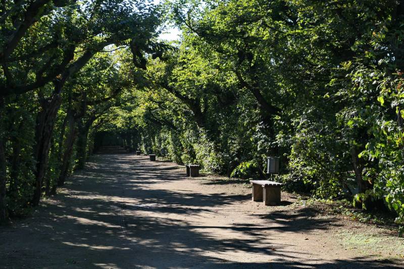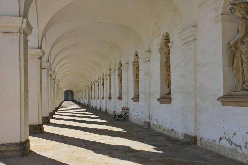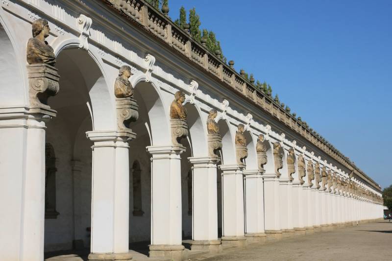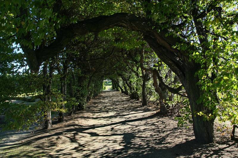 W ogrodzie znajduje się kolumnada o długości 224 m z posągami przedstawiającymi postacie z mitologii greckiej.