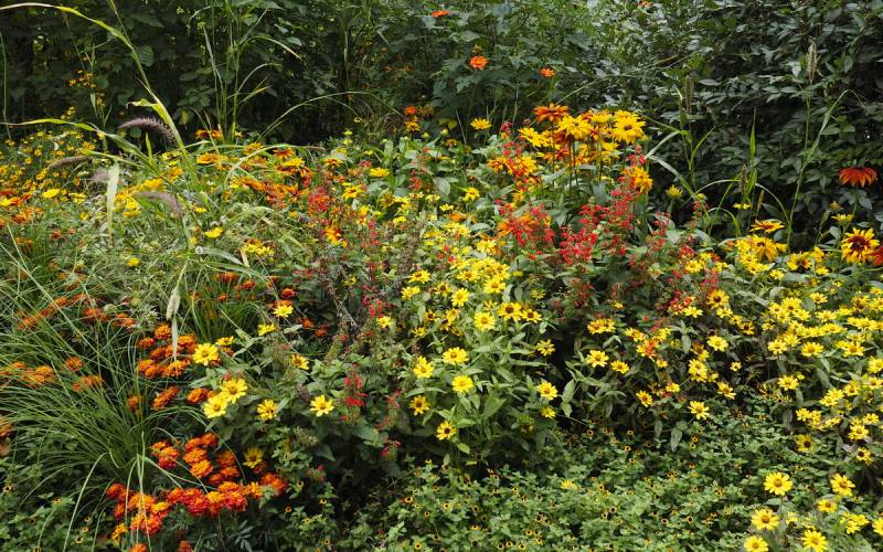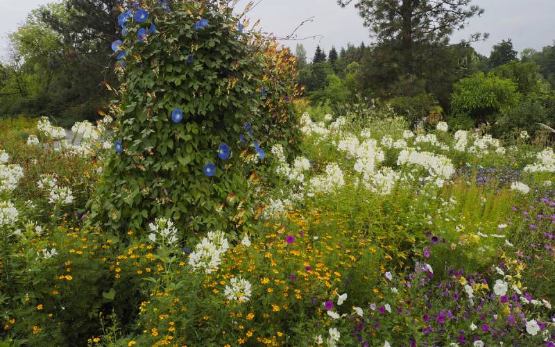 Nie ma więc typowego układu rabat, czy też kolekcji różnych odmian danego gatunku. Tabliczki z nazwami roślin trzeba odszukiwać, a ekosystemy roślinne zaczynają żyć własnym rytmem.