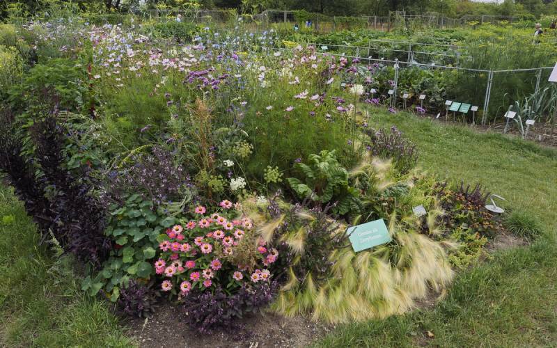 Zaczyna się od typowych letnich rabat, a wejście znajduje się przy szklarniach.