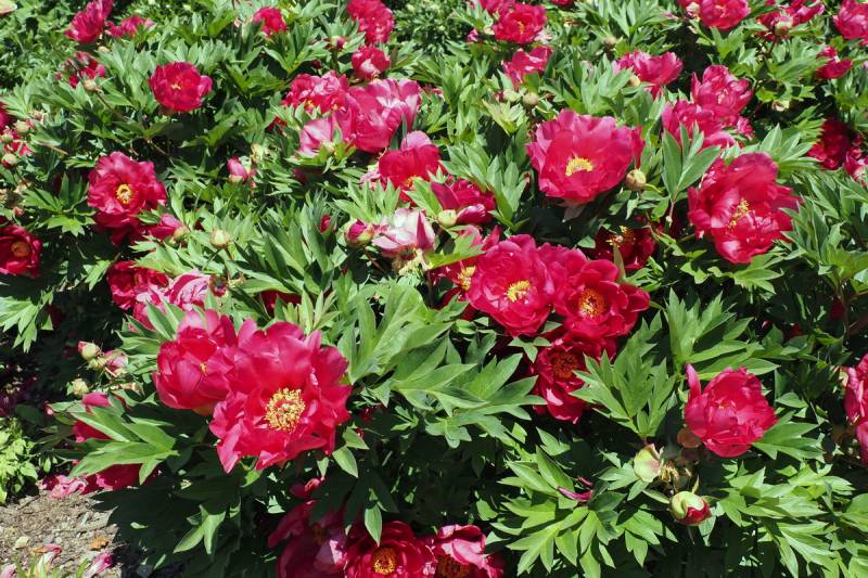 Liście: żywo-zielone, ciemne, mocno wcięte, typowe liście itohów