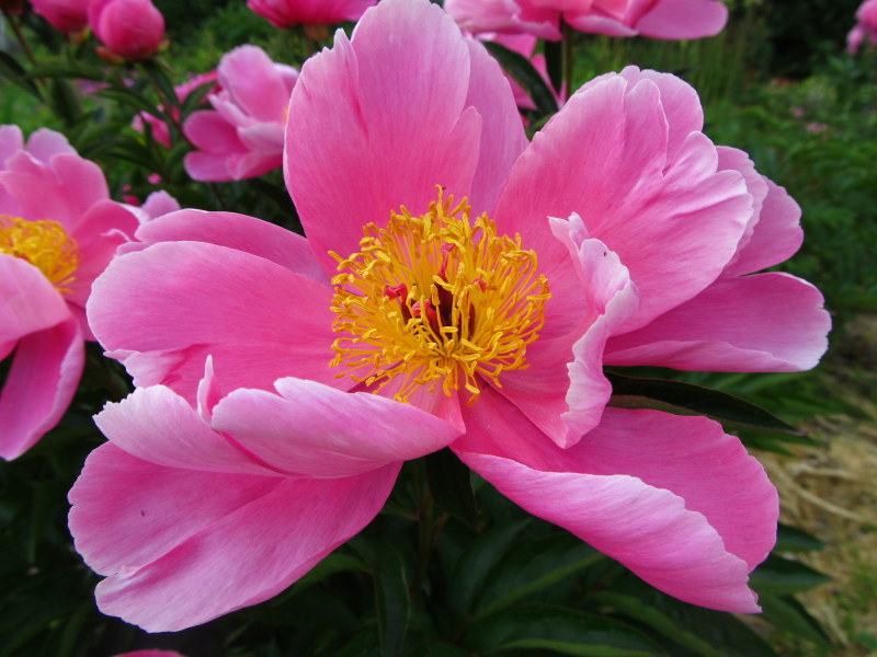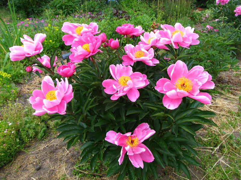 Hodowca: piwonia znaleziona w Chinach Kwiaty: pojedyncze mimo, że mają dwie warstwy płatków, o średnicy wg różnych źródeł od 12 do 20 cm. Płatki lekko "potargane" w kolorze "cukierkowego" różu. Bardzo gęste jaskrawo żółte pręciki. Zapach: przyjemny dość intensywny Wysokość: ok. 70 cm Liście: ciemnozielone, błyszczące Pęd: sztywny Termin kwitnienia: wczesny ww tekst Puszek