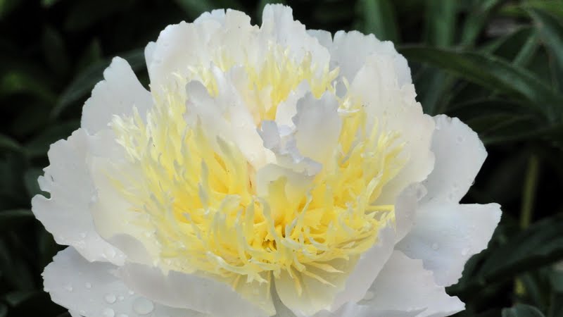 Hodowca: Carl G. Klehm (USA, 1959, wprowadzona do obrotu przez Roya G. Klehma 1979) Kwiaty: ok. 15 cm, pełne, płatki zewnętrzne białe, środkowe złoto-żółte Wysokość: ok. 80 cm, Liście: ciemnozielone Pęd: sztywny Termin kwitnienia: czerwiec Rodzice: Charlie’s White x Alice Harding
