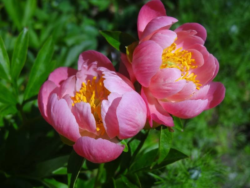 Kwiaty duże, podwójne, koralowe. z dobrze widocznymi pręcikami. Zapach przykry.