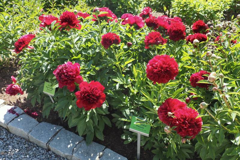 Kwiaty bardzo duże, pełne w pięknym czerwonym kolorze typu bomba.