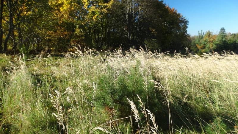 Trawy już żółkną i brązowieją. Najciekawiej prezentuje się połać z rodzimym trzcinnikiem piaskowym ( Calamagrostis epigeios.