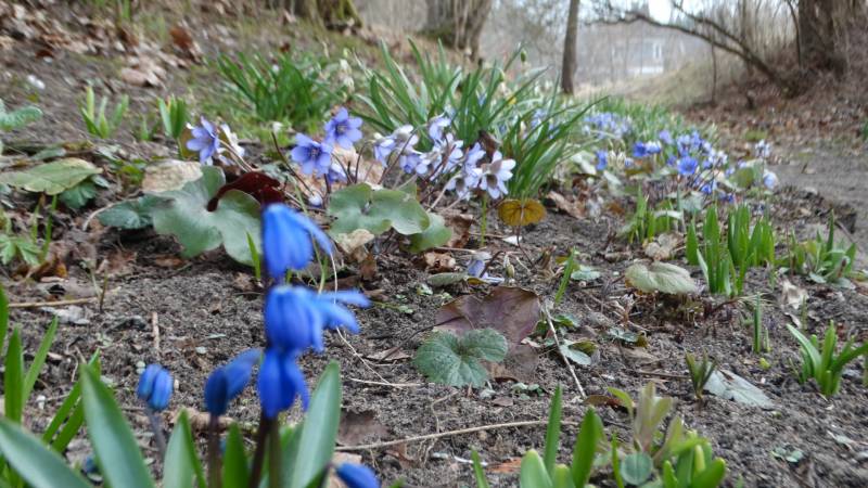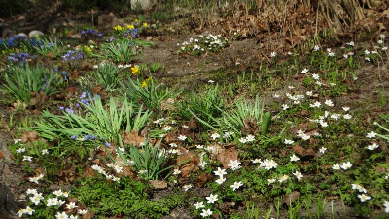 Kilka słów o orlayi. Róże w tym miejscu pomarzły, rabata zaczęła przekształcać się w łakę, a wraz z nią jest jeszcze wysiana dwa lata temu orlaya. Nie ma tu dla niej przyszłości jako rośliny łąkowej. Jeszcze jest, bo skorzystała z wcześniejszego pielenia.