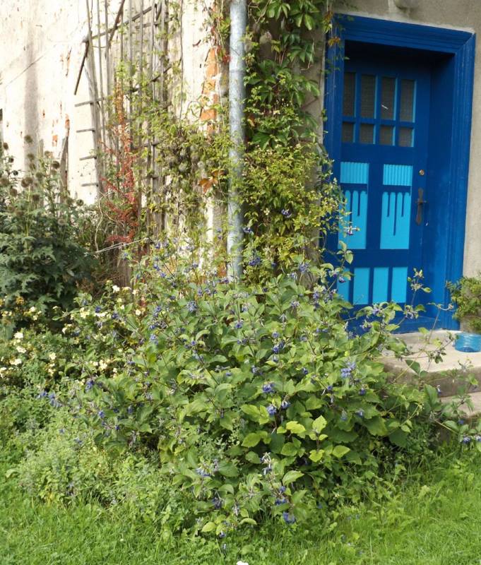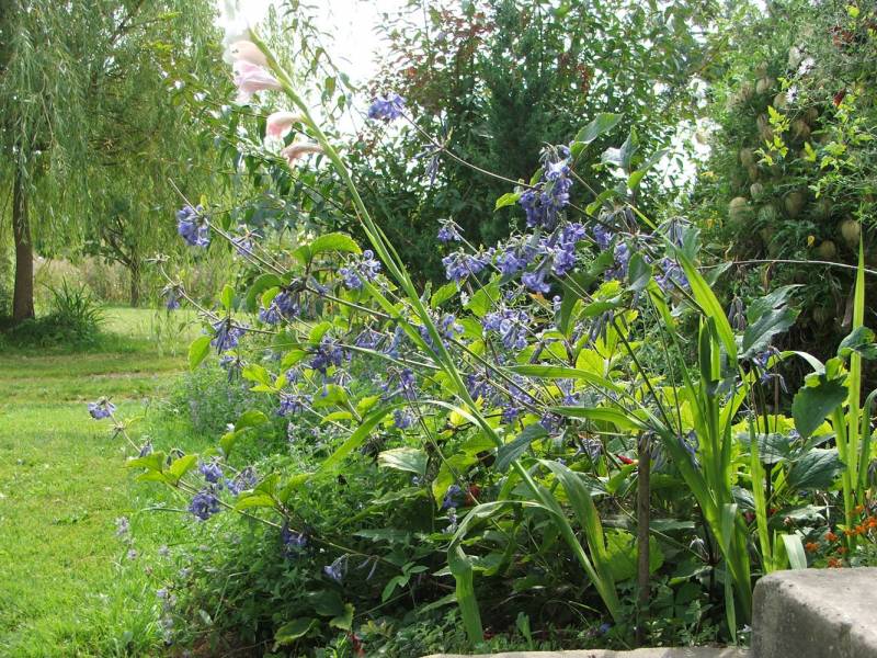 ), zatem niczym niezabezpieczona doniczka (nieduża, plastikowa) została na zewnątrz. Na wiosnę okazało się, że roślina dzielnie przetrwała trudy i zaniedbanie i pomimo to odbiła mocnymi pędami, oprócz tego mocno się rozkrzewiła więc czym prędzej dostała większą donicę. I teraz tak, rośnie bardzo silnie, w górę na ponad metr, ale i podobnie na szerokość, pędy są mocne, sztywne, nie wymagające podpór. U mnie stoi obecnie na szczycie pagórka przed domem, ma więc słońce prawie cały dzień. Nie przeszkadzają mu silne ostatnio wiatry, ani kotłujące się obok jego donicy psy. Sporo pije, ale nie jest nadwrażliwy na brak, kiedy ma za sucho widać po liściach, tracą wigor, ale szybko się zbierają po podlaniu. Generalnie polecam jako zupełnie niekłopotliwą, a robiącą wrażenie bylinę, Szybko zrobi efekt, zarezerwujcie mu jednak sporo miejsca. Kwiaty są nieduże, ale dość liczne, teraz zaczyna kwitnienie.
