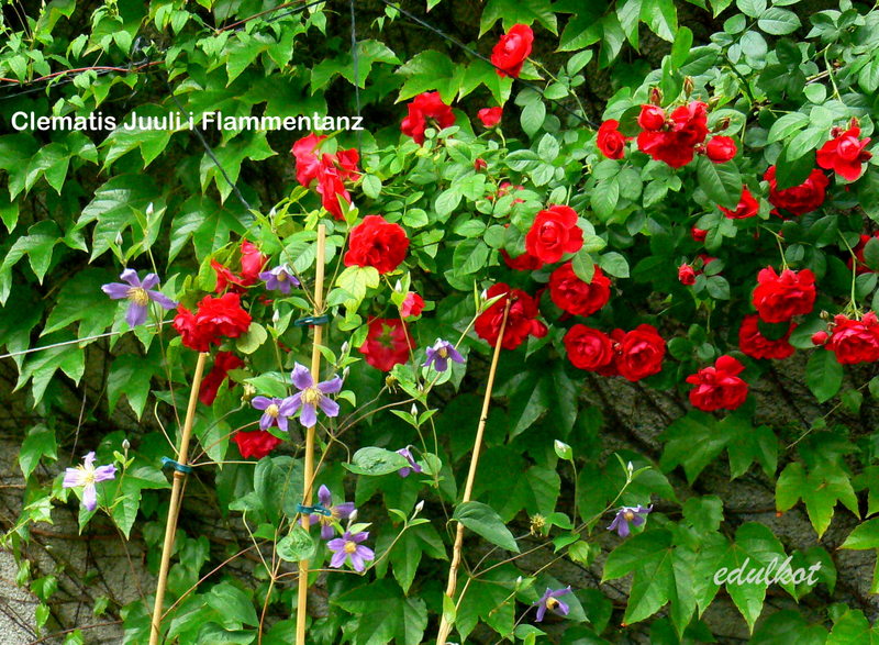 tu w towarzystwie odnogi róży Flammentanz i powojnika Madame Julia Correvon