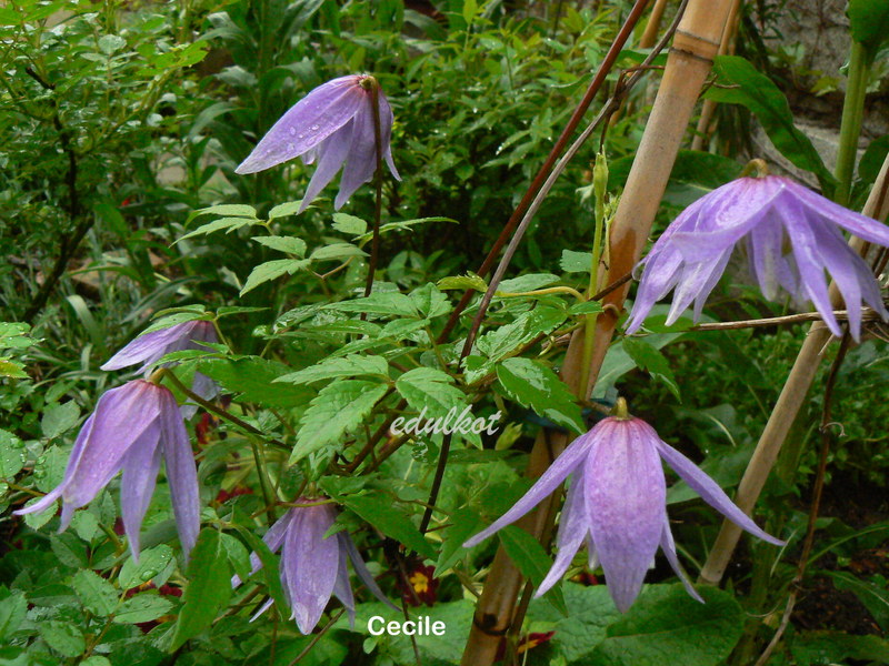 Kwiaty: fioletowobłękitne, małe, półpełne, po rozwinięciu, średnica 6-8 cm, kwitnie kon. IV˗V
