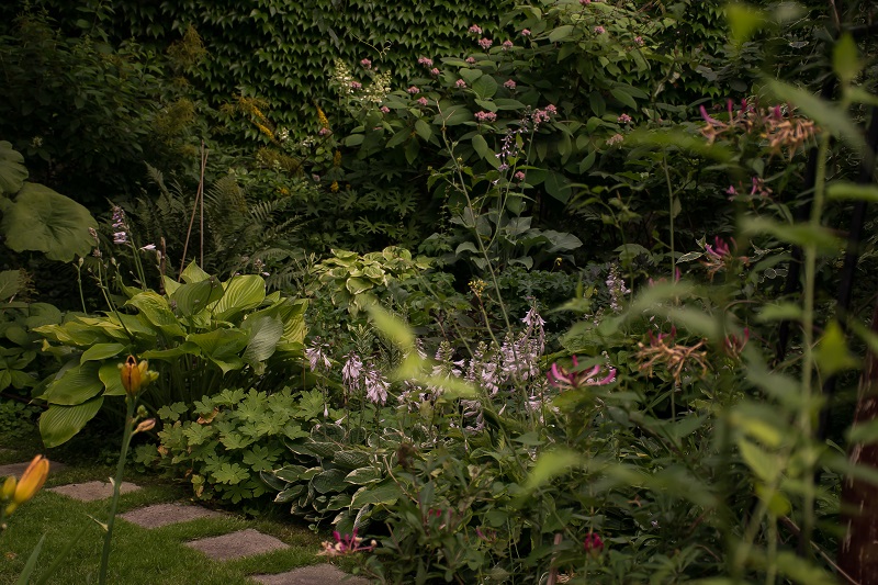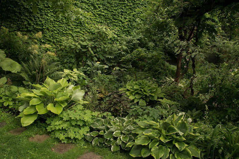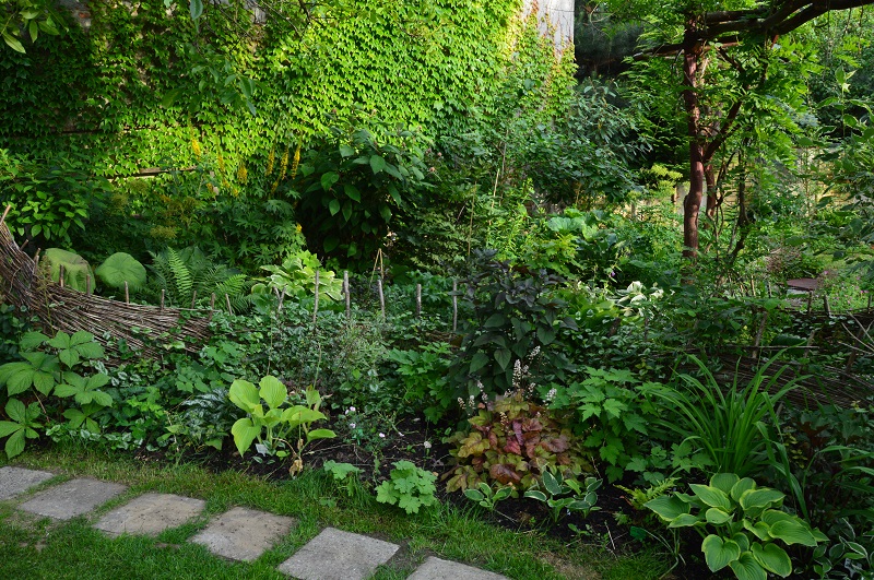 Tył rabaty, najbardziej zacieniony i wilgotny, stanowią