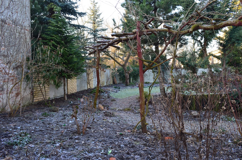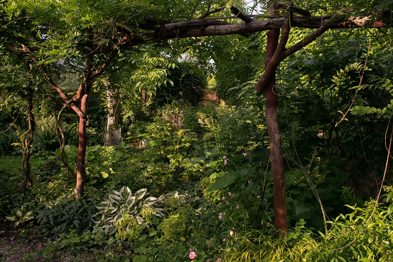 pod okapem orzecha włoskiego, który nie jest uważany za dobre sąsiedztwo dla bylin, choć ja nie odnotowuję jakichś problemów związanych z substancjami zawartymi w liściach. Korona drzewa została prześwietlona i skorygowana tak, aby poprawić statykę.