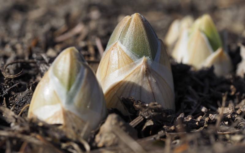 W czasie sadzenia gwiaździście rozgałęzione bulwy układamy tak, aby żadna odnoga nie była zagięta. Sadzimy na głębokość 15-20cm. Co 3 lata we wrześniu, wykopujemy wszystkie bulwy, segregujemy i sadzimy w przekopaną i nawiezioną kompostem ziemię. Kłączy nie przechowujemy, sadzimy od razu, gdyż szybko zasychają.