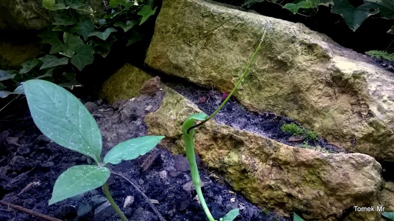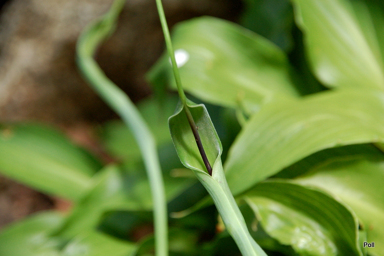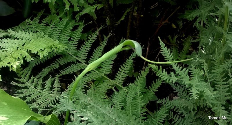 Ciekawe i oryginalne jest zakończenie kolby. To bardzo długi,gładki wyrostek,wystający z pochwy daleko poza roślinę. Dojrzałe rośliny w dobrych warunkach mogą osiągnąć nawet