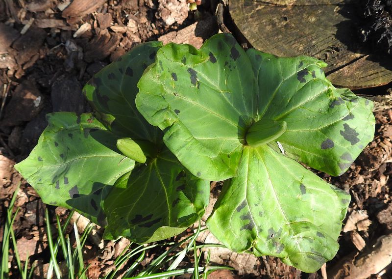 Na ten czas Trillium chloropetalum jest najbardziej zaawansowany w rozwoju w porównaniu do moich innych trólistów.