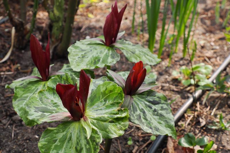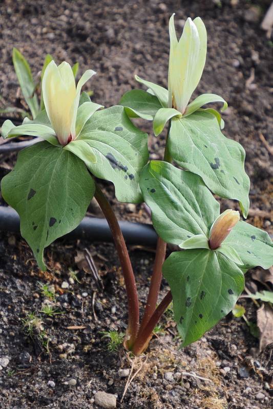 I u mnie jako pierwsze kwitną krzyżówki Trillium chloropetalum.