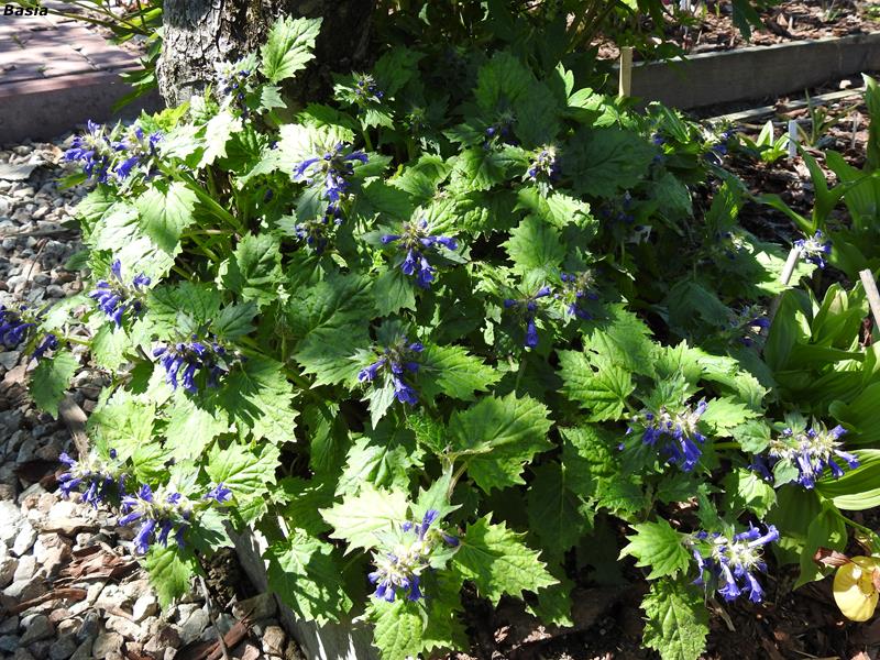 Szerszy widok na hosty i dąbrówki na skraju rabat