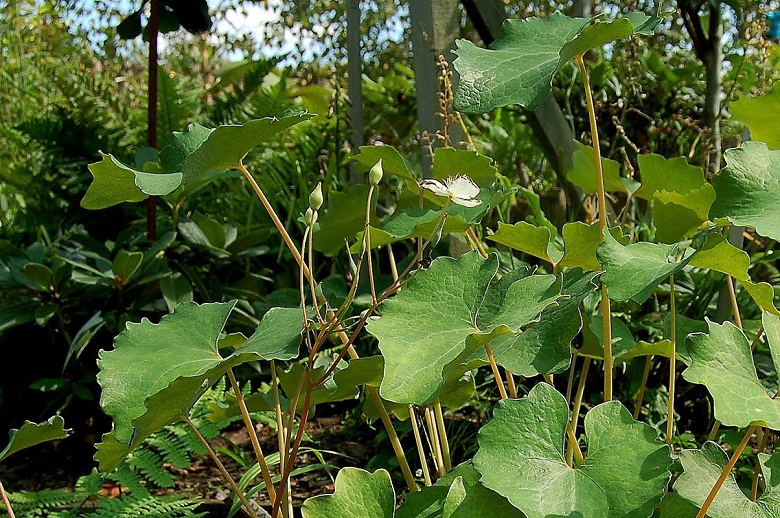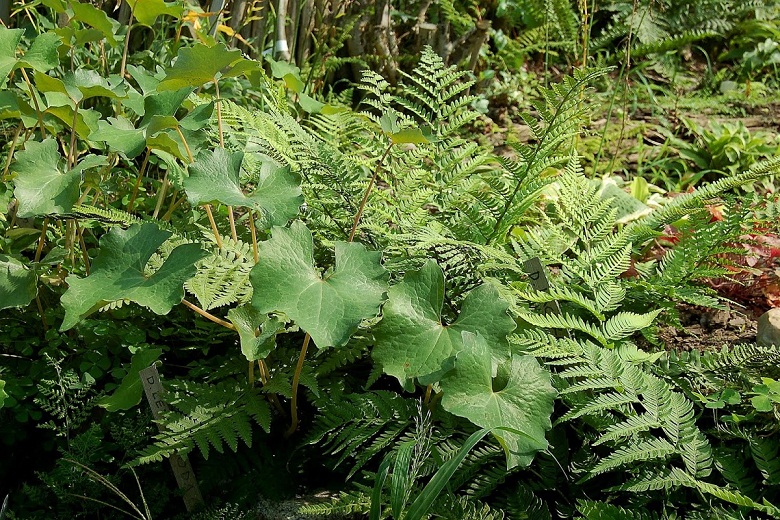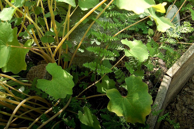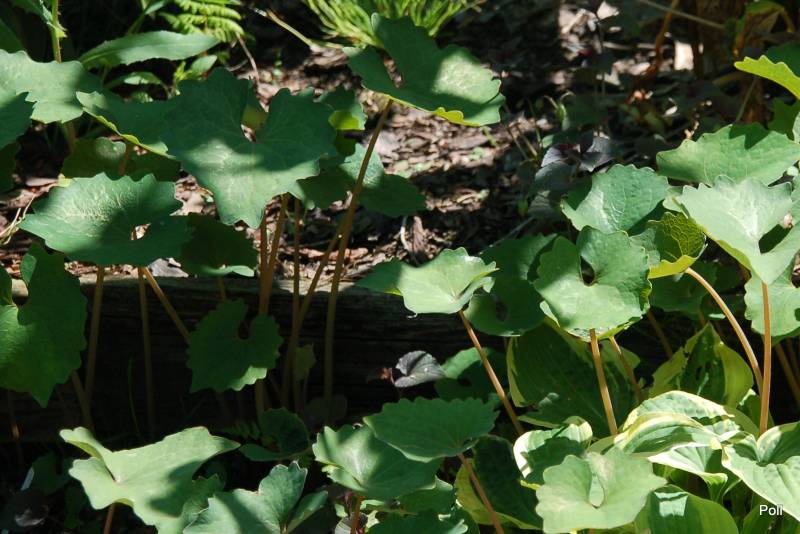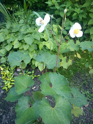 Kiedy przeczytałam o pochodzeniu tej rośliny (Chiny, cieniste, wilgotne zarośla i lasy, brzegi rzek), pomyślałam o przeniesieniu emekona na Sławojkowo, między paprocie, które często podlewam. To był strzał w dziesiątkę, ale jednoczesnie dosłownie inwazja tej rośliny. :woohoo: W ciągu jednego sezonu rozpanoszyły się na tarasach paprociowych, wyrastając wysoko ponad kilka z nich.