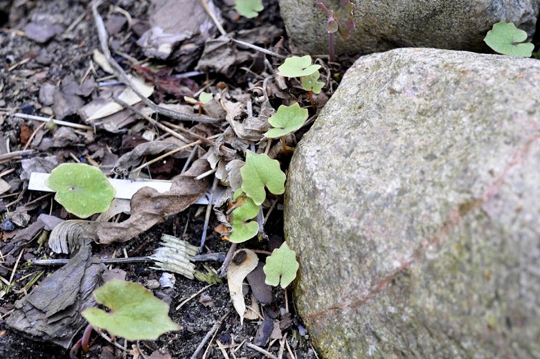 Przyrasta i namnaża się, a jakże, tyle że w locie. W miejscu, gdzie posadziłam jedną jedyną sztukę, nie ma już po eomekonie śladu, jest za to spora grupa jakieś półtora metra dalej w róży kanadyjskiej i kilka osobników z drugiej strony miejsca macierzystego, w hortensji.
