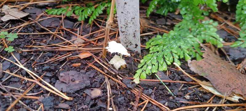 Siewki Podophyllum Spotty Dotty, które jesienią ubiegłego roku przesadziłam spod mamusi na nowe stanowisko w półcieniu. Były malutkie, miały kapelusiki ok 2cm średnicy.